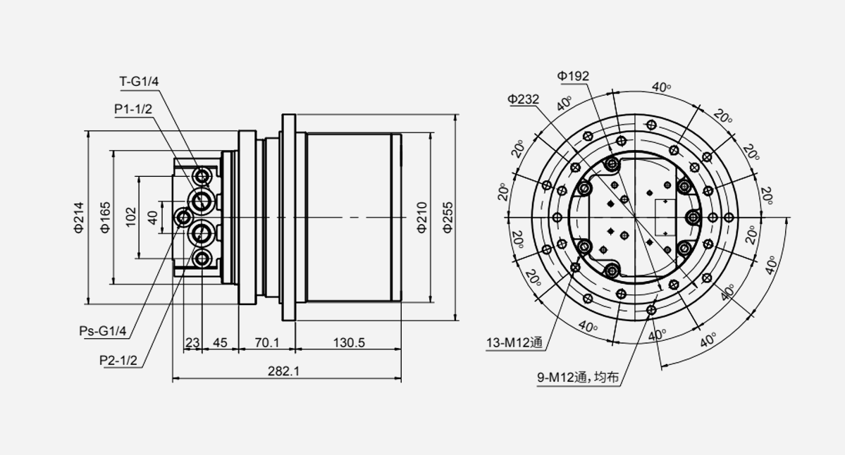 | Modal | (L/min) Input flow | (ML/r) | (Mpa) | (Mpa) | Ratio calces | (N.m) | (r/min) | gyratio | (℃) | (mm2/s) |